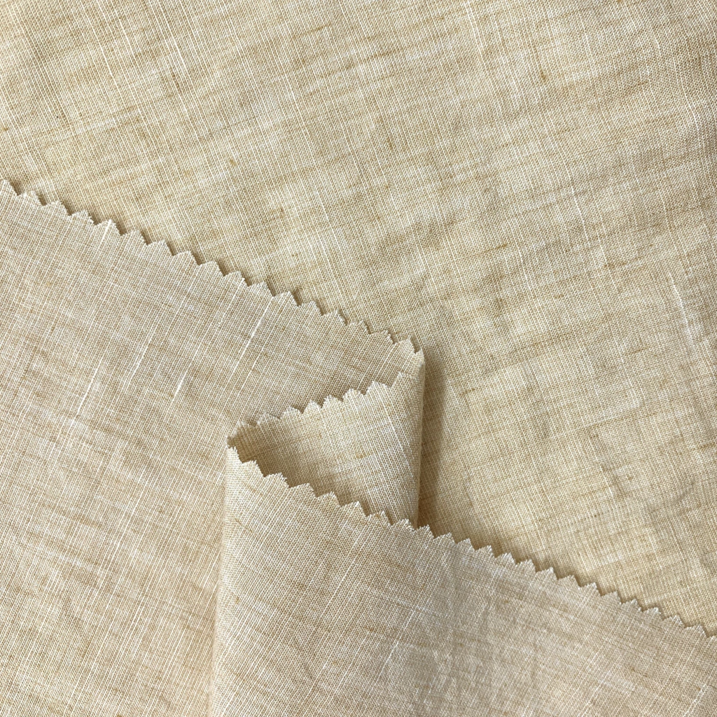 Tela tipo lino liviana con trama melange. Siendo liviana y sin elasticidad, es fácil de trabajar e ideal para prendas con caída.
