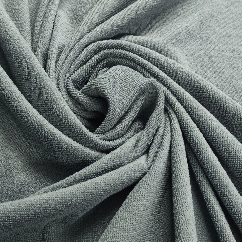 La tela toalla de microfibra es un textil sin elasticidad apto para sublimar, que cuenta con buena capacidad de absorción y secado rapido. Debido a sus características, es ampliamente utilizada en toallas y toallones, ponchos y batas, toallas de playa y pileta, alfombra de baño y repasadores.