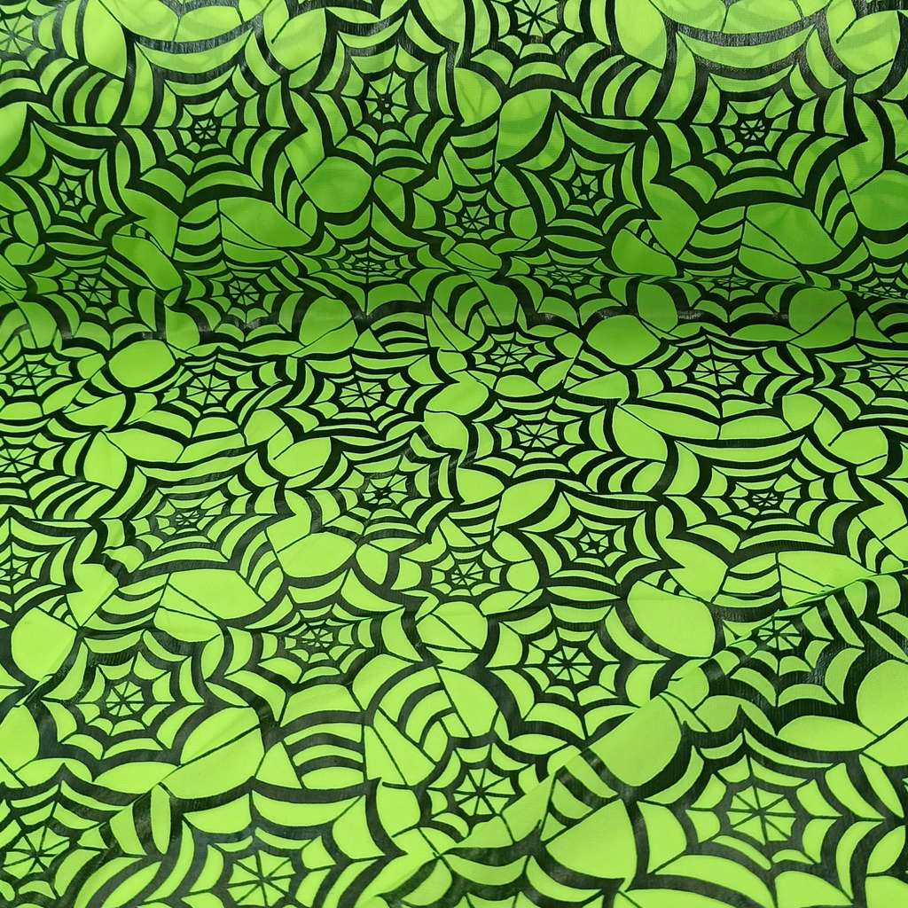 El transfer Araña es una tela con estampa brillante, liviana y con leve elasticidad.