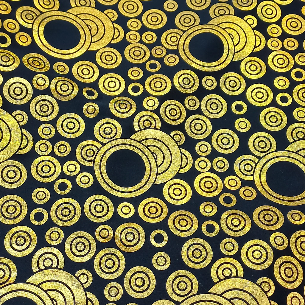 El transfer Círculo es una tela con estampa brillante, liviana y con leve elasticidad.