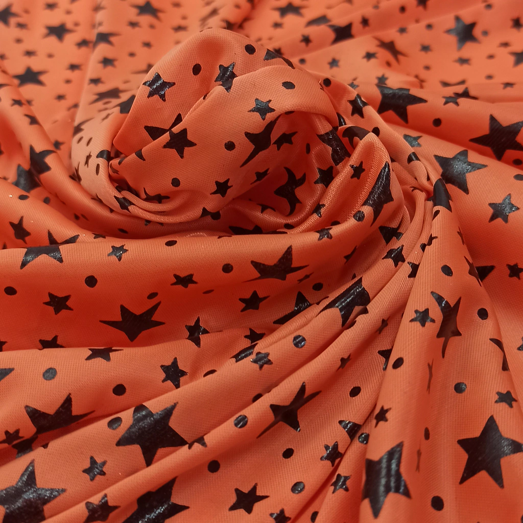 El transfer Estrella es una tela con estampa brillante, liviana y con leve elasticidad.