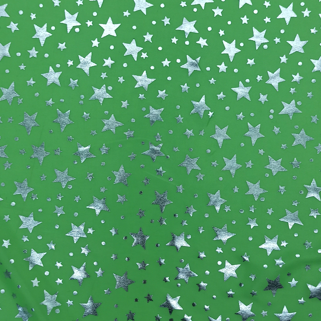El transfer Estrella es una tela con estampa brillante, liviana y con leve elasticidad.